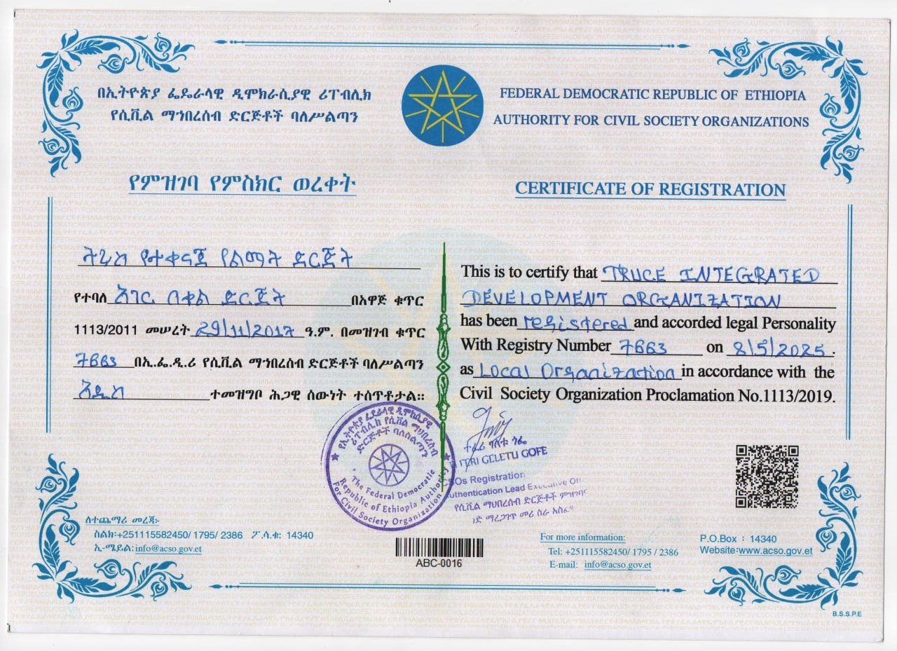 Truce Integrated Development Organization (TIDO) is a nationally registered Ethiopian civil society organization (Proclamation No. 1113/2019, Reg. No. 7663) dedicated to fostering resilience and self-reliance. We empower women, youth, refugees, and internally displaced persons (IDPs) through a holistic approach that integrates psychosocial support, sustainable livelihoods, and quality education. By championing innovation and local ownership, TIDO transforms systemic challenges into opportunities for long-term social and economic progress.